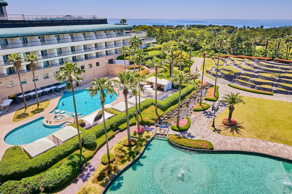 Located in Jungmun, the hotel features landscaped gardens, ocean views, and a lagoon-style pool that is particularly popular with families. The property also includes a casino, multiple restaurants, and easy access to nearby attractions like waterfalls and beaches.