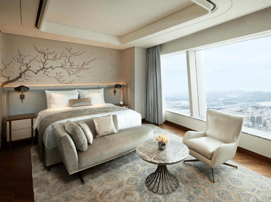 Signiel Seoul offers a high-rise luxury experience unlike any other in the city. Located in the Lotte World Tower, it occupies some of the highest floors, delivering panoramic views that are frequently described as unforgettable.
