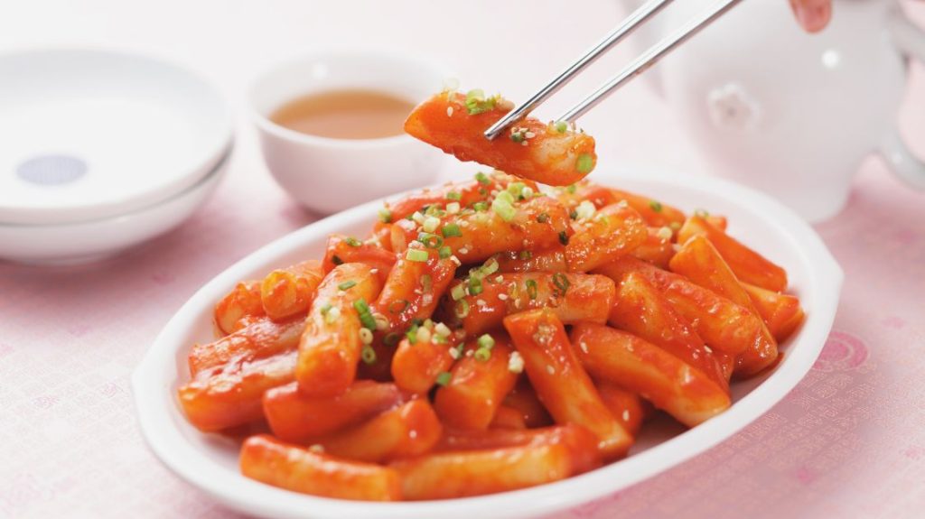 15. Tteokbokki (Spicy Rice Cakes): Chewy rice cakes in sweet-spicy gochujang sauce. The king of Korean street food at 3,000 to 5,000 KRW per serving, often paired with fish cakes and boiled eggs. Difficulty: Moderate.