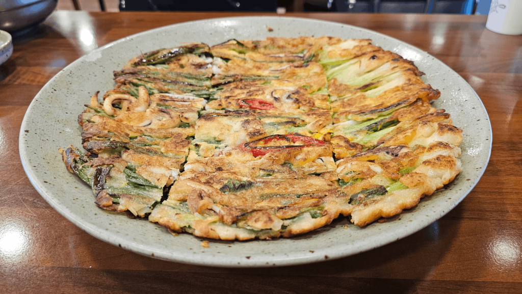 - Bindaetteok (mung bean pancakes): Thick, crispy pancakes of ground mung beans, pork, and kimchi fried in generous oil. Around 5,000 KRW, hearty and best eaten hot off the griddle.